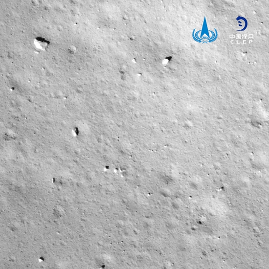 着陆过程中,嫦娥五号的着陆器配置的降落相机拍摄了着陆区域影像图。