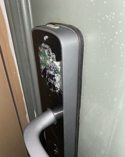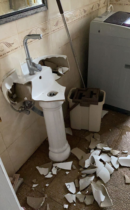 上海闵行区蛋壳公寓的一间出租屋内,被房东砸碎的密码锁和被敲碎的洗漱台。照片来源于网络