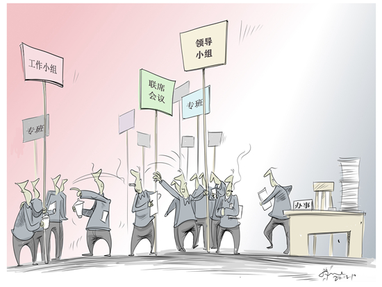 成立工作专班,本是推进工作的方式之一,但在基层,一些工作专班出现泛化、异化现象。成立专班时风风火火、推进工作时慢慢腾腾、责任落实时你推我拉,结果评估时与目标相差甚远,甚至南辕北辙。只有让工作专班摆脱花架子、发挥真效能,切实推动工作专班“减量”“瘦身”,才能更好地为基层减负。(《半月谈》2020年第23期)漫画:徐简