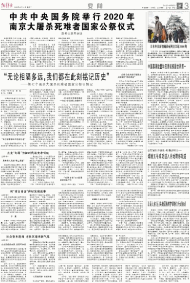 中共中央国务院举行2020年南京大屠杀死难者国家公祭仪式
