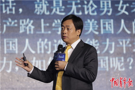 12月26日,第五届“中国制造日”全国主会场活动“扬帆远航”板块上,中国人民大学欧盟“让·莫内讲席教授”王义桅作主旨演讲。中青报·中青网记者 李隽辉/摄
