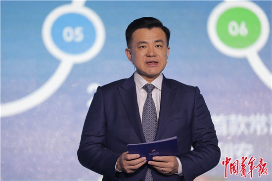 12月26日,第五届“中国制造日”全国主会场活动“中国品牌”板块上,光明乳业党委书记、董事长濮韶华做主旨演讲。中青报·中青网记者 李隽辉/摄