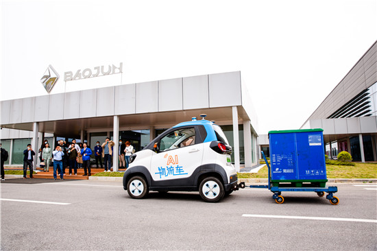 在新宝骏园区,搭载了L4级别无人驾驶系统的无人物流车正有序运行。