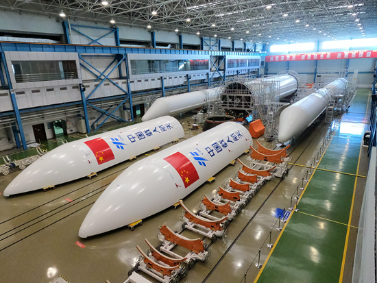 长征五号B火箭正在中国航天科技集团一院211厂进行测试。211厂供图