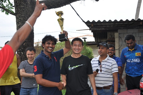 振华重工斯里兰卡子公司负责人张志勇与当地员工在活动中合照。他发现,很多斯里兰卡的青年工程师已经成长为建设现代港口的得力干将。受访者供图