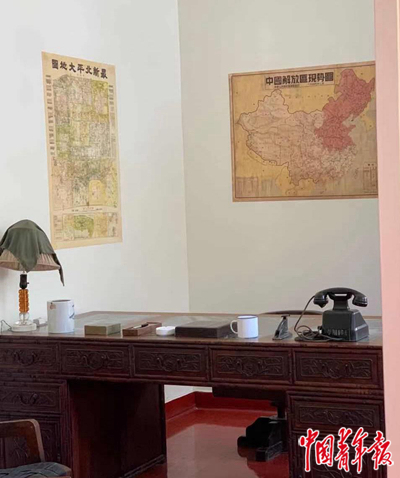 毛泽东在香山的书房里,挂着两幅地图。中青报·中青网记者 孙庆玲/摄