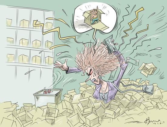 近日,中消协针对盲盒市场发布了消费提示,对目前市场上存在的商家过度营销、商家涉嫌虚假宣传、产品质量难以保障和消费纠纷难以解决四类主要问题进行了提示,同时提示相关经营者,要从产品本身下功夫,不要一味蹭盲盒的营销热度,赢得了眼前的利益却丢掉了长远的口碑。(《光明日报》2月1日)漫画:徐简