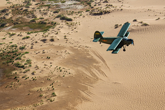 这条“火柴棍”跑道不仅窄,而且很短,只有600多米。本来飞播队每天早起,赶在没有风的上午飞行,可有一次大风提前来了,迎面吹来的风速达到8米/秒,飞机已经接地却又被吹了起来,再次接地、刹车,终于停下来时几乎已经到了跑道尽头,差点就冲出去了。
