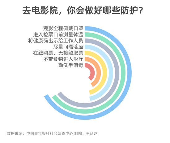 近日,中国青年报社社会调查中心联合问卷网(wenjuan.com),对2024名受访者进行的一项调查显示,88.7%的受访者对电影院的防疫举措满意,78.0%的受访者观影全程佩戴口罩。