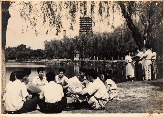北京大学的学生在学习讨论宪法草案。“五四宪法”历史资料陈列馆供图