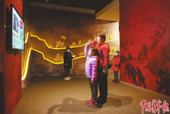 3月20日,北京首都博物馆,观众在参观《伟大征程——庆祝中国共产党成立100周年特展》,体验多媒体互动观展。该展览于3月9日开幕,运用数字和多媒体互动手段,共展出图片、照片和实物展品约280组件。 中青报·中青网记者 李峥苨/摄