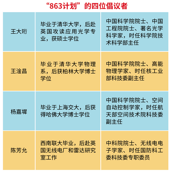 邓小平,1997年逝世;王淦昌,1998年逝世;陈芳允,2000年逝世;杨嘉墀,2006年逝世;王大珩,2011年逝世。他们用生命的最后十年二十年护佑着“863计划”顺利展开,并初见成果。