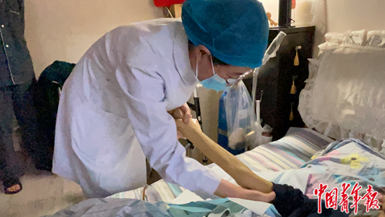 “下单的几乎都是需要长期居家护理的高龄、超高龄患者。让他们总是花钱请护士上门,对老人来说经济压力确实会大一些,所以上门时就尽量多做一些,能帮解决的就顺手帮解决了。”郝静瑜说。