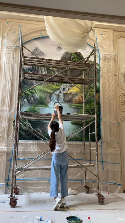 最近,一个叫佳佳的95后壁画师走红短视频平台。