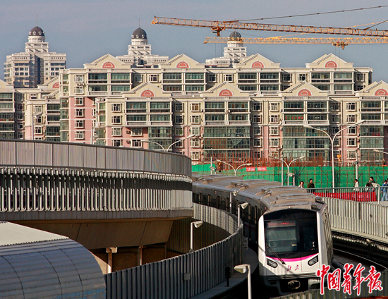 •     2007年10月7日,一列城铁列车经过北京天通苑居民区附近。据介绍,近20年来,经过住房改革制度的改革,老百姓无论是居住面积还是居住环境都发生了翻天覆地的变化。中青报·中青网记者 陈剑/摄