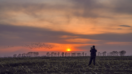 3月30日,吉林省白城市镇赉县,护飞队长潘晟昱拍摄候鸟。