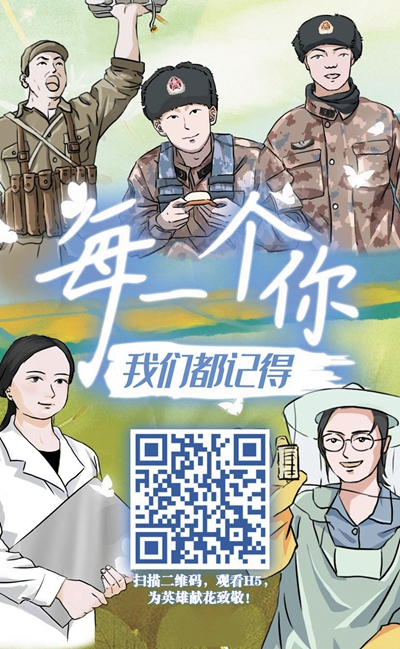 “在代表英雄的选取和呈现上,我们不仅考虑到狼牙山五壮士和董存瑞等碧血染红旗的革命先烈,也关注到了新时代逆行战‘死神’的白衣天使、力挑山乡未来的扶贫英雄和卫国护界碑的戍边战士。”H5专题文案负责人周子璠告诉中青报·中青网记者,“文案撰写最难的在于如何用最简洁的字句表达最丰富的信息和情感,前后改了不下10个版本。”