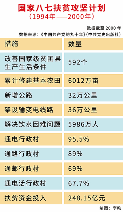 为解决农民增收问题,党和政府采取多方面措施,加大扶贫攻坚力度。1994年初开始实施《国家八七扶贫攻坚计划》,即从1994年到2000年,集中人力、物力、财力,动员社会各界力量,力争用7年左右的时间,基本解决8000万农村贫困人口的温饱问题。