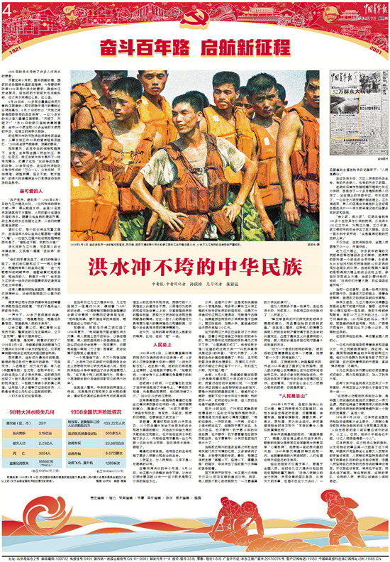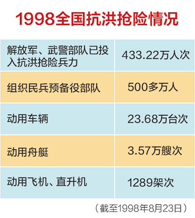 那年夏天,在党中央的领导和指挥下,全党、全军和全国人民在长江、嫩江、松花江、珠江流域与洪水展开了一场殊死搏斗,打赢了这场“比战争还残酷”的战争。20余年过去,在这场抗洪抢险斗争中形成的“万众一心、众志成城,不怕困难、顽强拼搏,坚忍不拔、敢于胜利”的伟大抗洪精神至今仍澎湃在中华民族的血脉中。