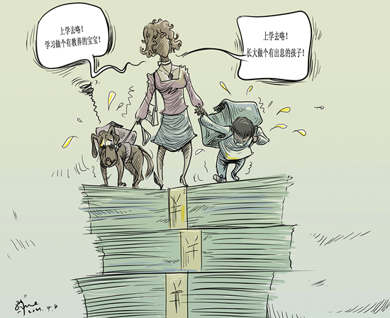 近年来,“宠物上学”兴起,许多养宠人把自家宠物送去学校学习,接受教育。有宠物行业经营者介绍:“很多主人给宠物上完一期课程,还会接着上二期三期四期,花费两三万元也差不多,挺舍得为狗的教育埋单。”随着社会经济发展和结构变化,宠物消费需求也日益多样化、“人格化”。(中国新闻网4月6日)漫画:徐简
