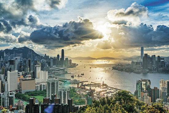 2017年7月22日,中国香港,中环上空的云彩和阳光。视觉中国供图
