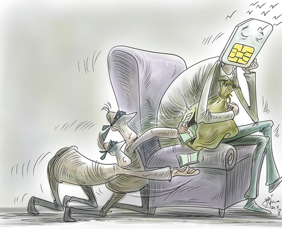 银行卡里的近10万元钱被人悄无声息地取走了,绑定的手机卡也被补办了。是谁补办了手机卡?又如何悄无声息冒用真正持卡人名义转走了钱?近日,江苏徐州市泉山区司法机关办理了一起信用卡诈骗案件,犯罪嫌疑人通过筛选别人不用的号码,然后花钱让通信公司内部人员帮忙补卡,再找人演戏蒙混过认证,最后通过手机验证码实现转账。(《扬子晚报》4月8日)漫画:徐简