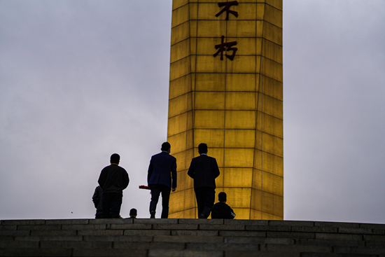 4月2日,人们在成都市烈士陵园缅怀革命英烈。四川省森林消防总队指战员在成都市烈士陵园举行悼念追思活动,深切缅怀长眠在这里的革命先烈和四川木里救火勇士,成都各界干部群众也前来参加祭扫活动。程雪力/摄