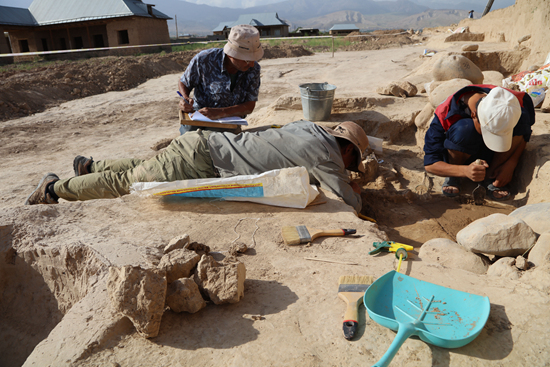 2017年,拉巴特墓地发掘现场,中乌学者配合工作。 西北大学供图