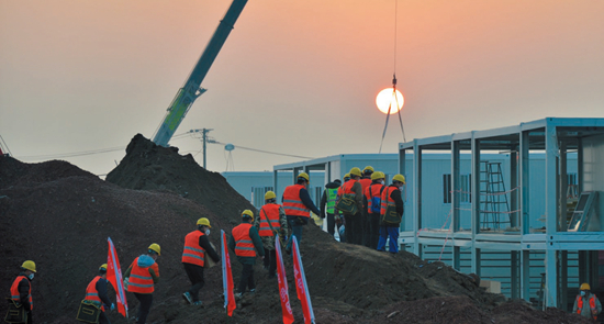 负责板房吊装的王晓红则面临着场地受限、吊车无法直达施工现场的困境。搬运钢材的80后、90后员工二话不说上手便抬。300公斤一根的钢板,最轻的钢柱也有70公斤一根,总计129吨的钢材,就是这群年轻人顶着深冬的雨雪,一根根扛上坡道,抵达施工地的。