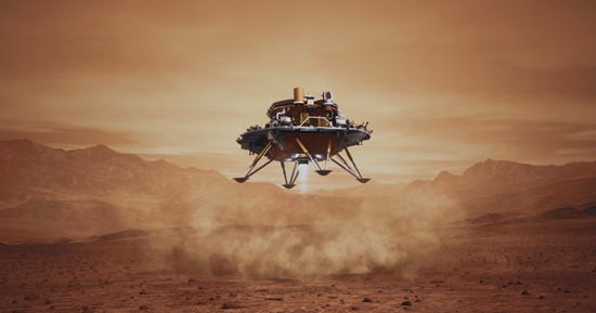 天问一号着陆巡视器着陆火星乌托邦平原效果图。中国航天科技集团供图