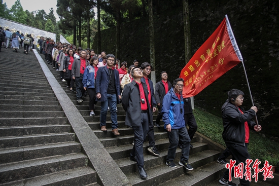 4月27日,江西井冈山革命烈士陵园,参观者走下石阶。