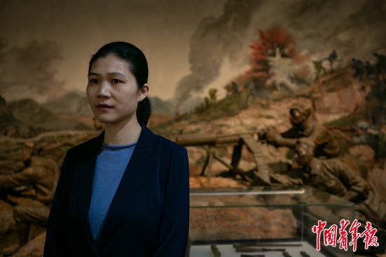 4月26日,广西桂林全州县,易荡平烈士的曾孙女聂琳在红军长征湘江战役纪念馆。易荡平原名汤世积,身为红一军团第二师模范红五团政委的他,在湘江战役脚山铺阻击战中身负重伤,为了不当俘虏开枪自尽,年仅26岁。