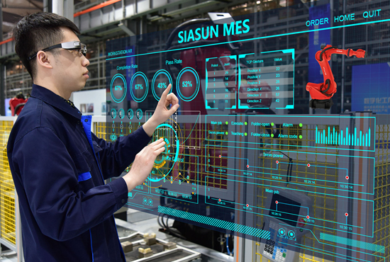 2019年3月21日,工作人员展示新松智能制造平台。 新松公司供图