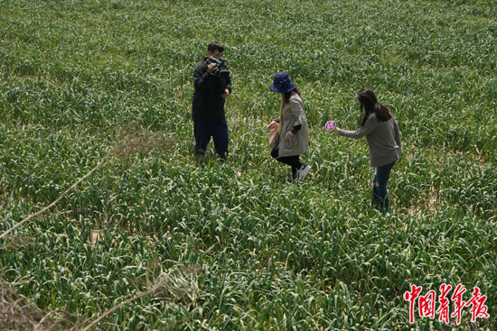 4月27日,华小莉和搭档唐思欧前往蒜苗地帮忙,蒜农求助找人帮忙免费抽蒜薹。
