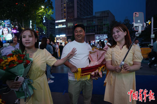5月8日晚,求助人带着鲜花和锦旗来到粉丝见面会的现场。