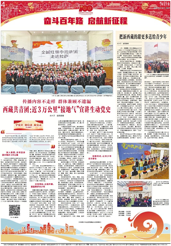 党史学习教育开展以来,西藏共青团积极贯彻落实党中央的决策部署,严格按照自治区党委、团中央关于党史学习教育的具体要求,结合西藏工作实际,围绕“五史”学习要求,结合青少年特点,贴近青少年需求,创新形式载体,集中开展宣讲,带头参与实践,推动青少年党史学习教育往深里走、往实里走、往心里走。