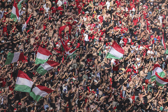 欧洲杯赛匈牙利队与法国队一战,布达佩斯普斯卡什大球场座无虚席。 视觉中国供图