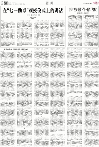 中共中央关于授予“七一勋章”的决定