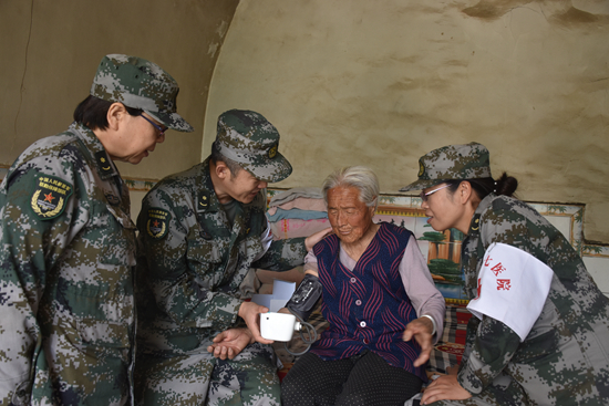 在延安走村入户巡诊的第987医院神经内科主任薛海龙也有相同的感受。在赵台村,他和战友遇到了失明老人师友道,进门时老人独自坐在沙发一角流泪,走时她起身摸索着送军医们出门,脸上已浮现笑容。