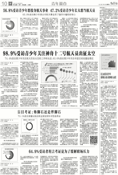 56.8%受访青少年想投身航天事业 47.2%受访青少年长大想当航天员