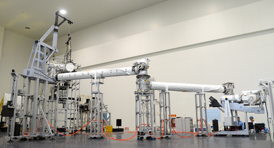 在地面进行研发试验的空间站核心舱机械臂。中国航天科技集团五院供图
