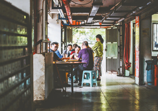 “这里百分之百的住户都认识我,我能记得其中九成人的脸。”2003年,他在公共走廊上开了当时唯一一家饭馆。开业时 ,很多住户来捧场,一度坐到走廊里。那段岁月,走廊没有灯,晚归的年轻人怕黑,请他陪着走回家。