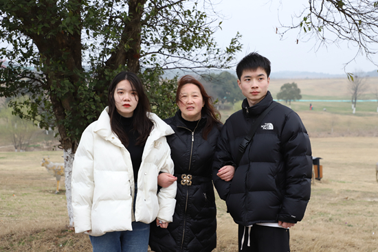 2021年2月15日,湖北省武汉市木兰草原,秀秀(左一)和母亲、弟弟的合影。去年秀秀一家相继感染新冠肺炎,她的父亲也因此去世。今年过年期间,一个偶然的契机,作者得以跟拍这个新冠肺炎康复家庭的日常生活。