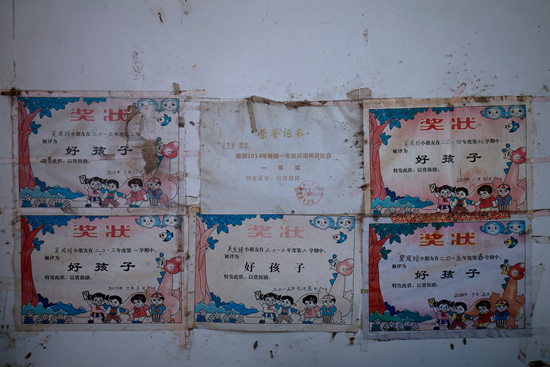 有人关注身边的日常,有人将镜头对准远方。浙江传媒学院的蒋雯雯深入广西南宁周边的贫困村落,拍摄当地留守儿童的生活境况。她从与孩子们的对话中提取出一些文字,用刺绣的方式与照片并置,在毕业展现场模拟孩子们居住的空间。