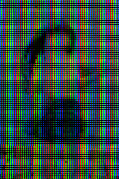 如今许多年轻人将情感寄托在互联网社交媒体上的网红、主播身上,与虚拟账号背后的“爱人”恋爱。该作品拍摄了屏幕里那些令人迷恋的“形象”,当观众距离这些影像足够远时才能够看清其样貌,近看时则一切都消失不见。