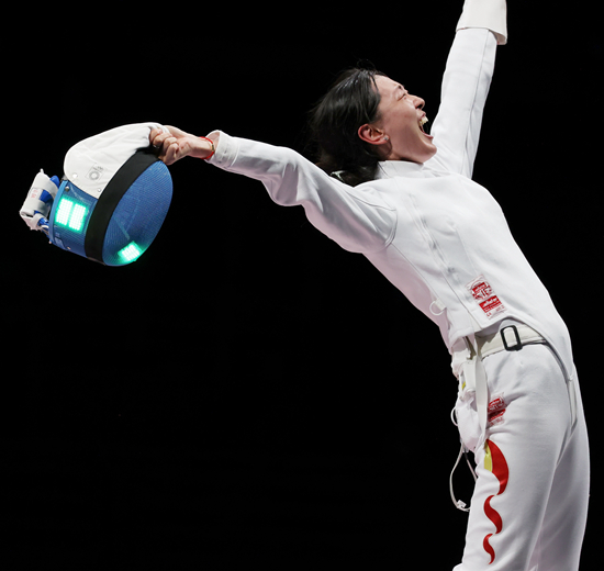 7月24日,在东京奥运会女子重剑个人决赛中,中国选手孙一文在加时赛中一剑封喉击败世界排名第一的波佩斯库,夺得冠军。钱俊/摄