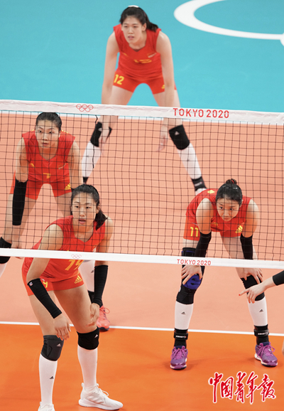 7月25日,中国女排在比赛中。中青报·中青网特派记者 刘占坤 摄