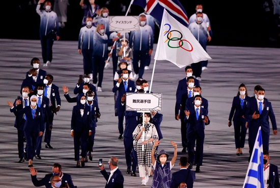 难民代表团在东京奥运会开幕式上。视觉中国供图