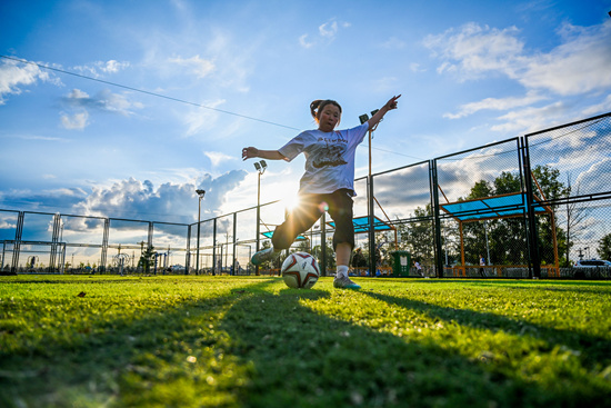 7月26日,吉布斯乐玛在锡尼河西苏木一处足球场踢球。