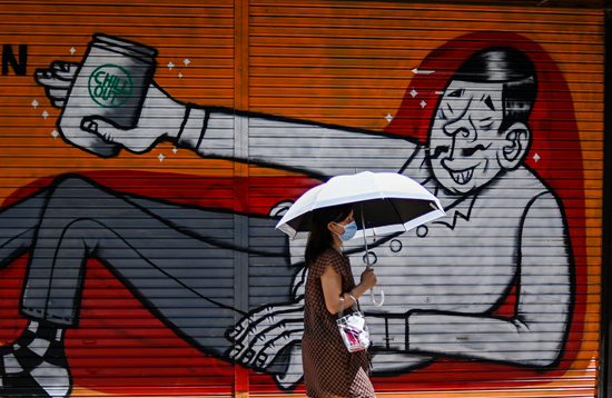 8月10日,东京街头。日本当日报告首例“拉姆达”变异毒株感染病例。视觉中国供图